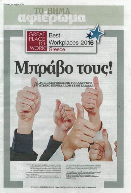 Αφιέρωμα στο ΒΗΜΑ: Best Workplaces™ 2016