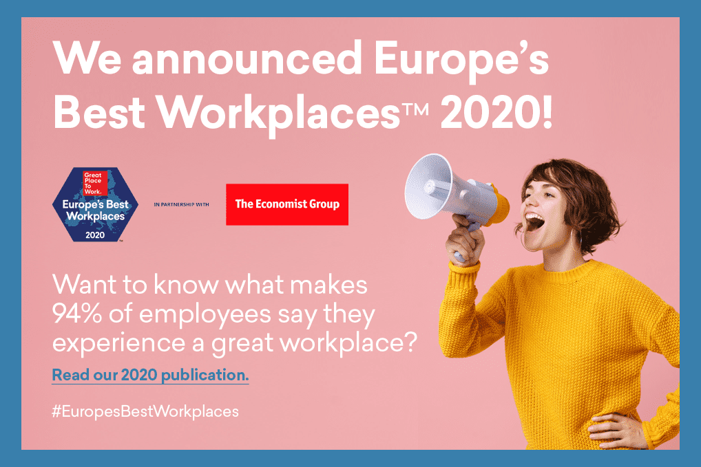 Το Great Place to Work®  σε συνεργασία με το The Economist Group, ανακοίνωσε τα ονόματα των καλύτερων Ευρωπαικών εταιρειών για το 2020.  Διαβάστε το αφιέρωμα για αυτές τις εταιρείες.